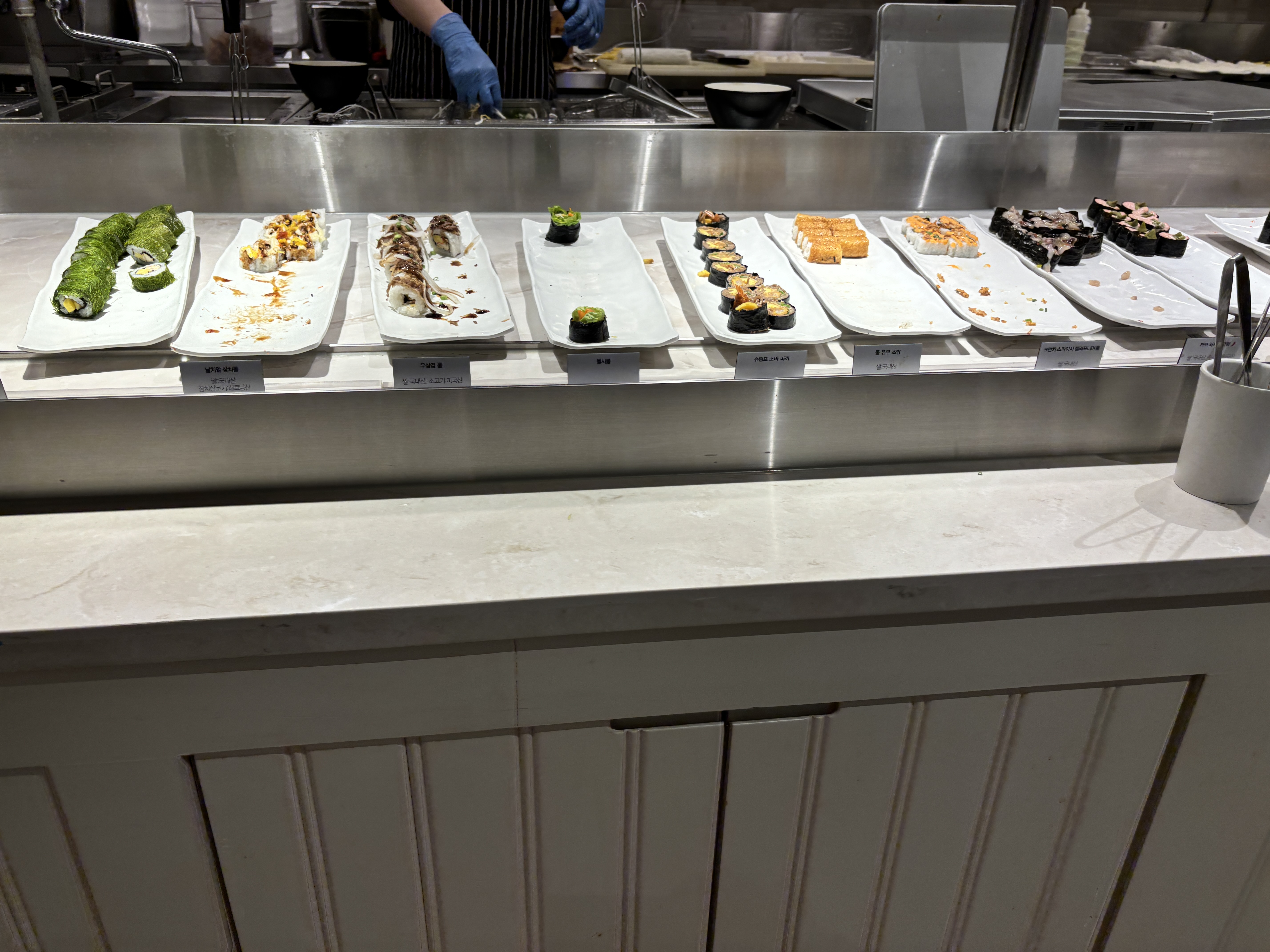 스시랑 회를 한가득 담아서 두번 정도 왔다갔다 하고 앉았어요