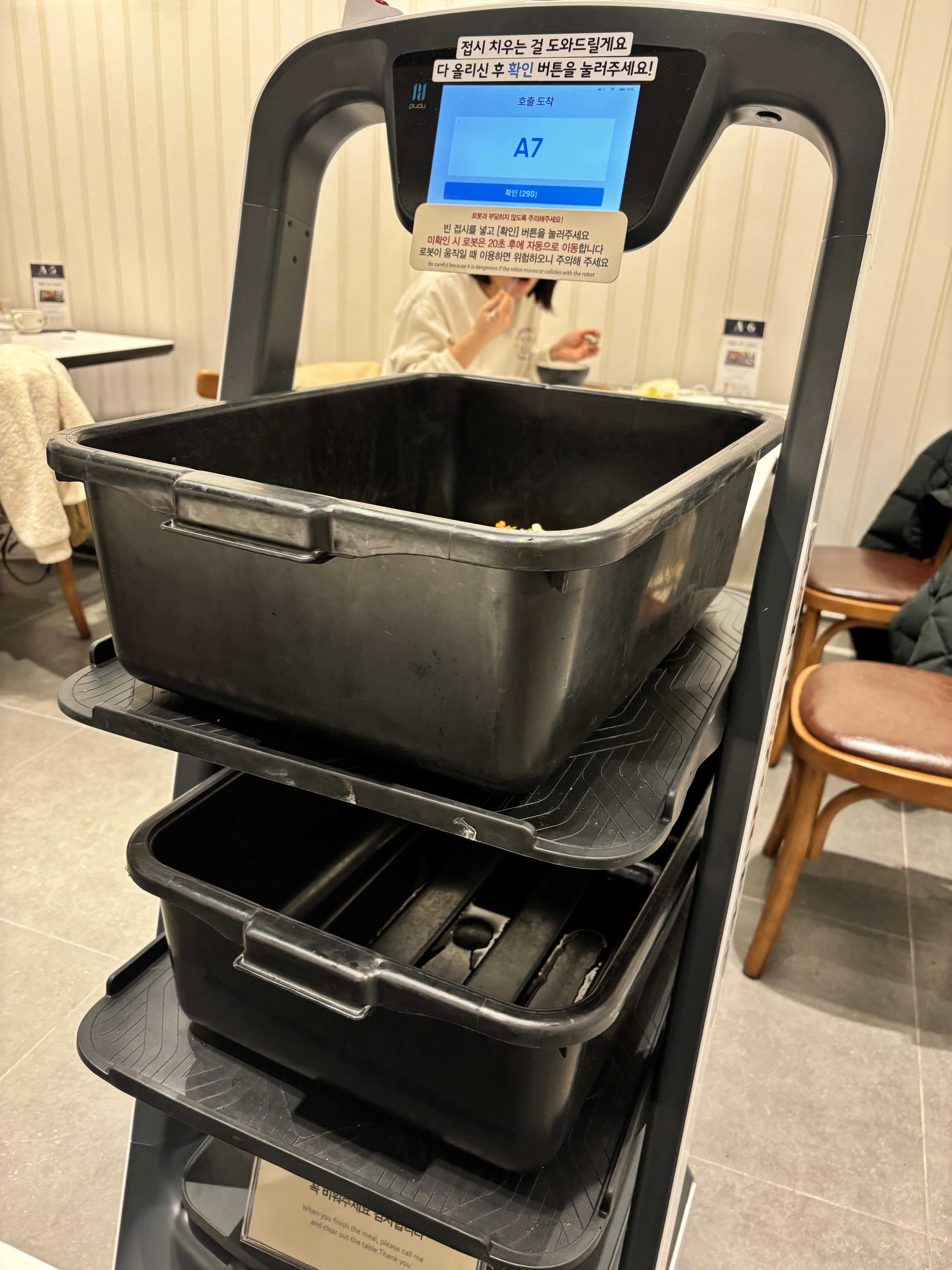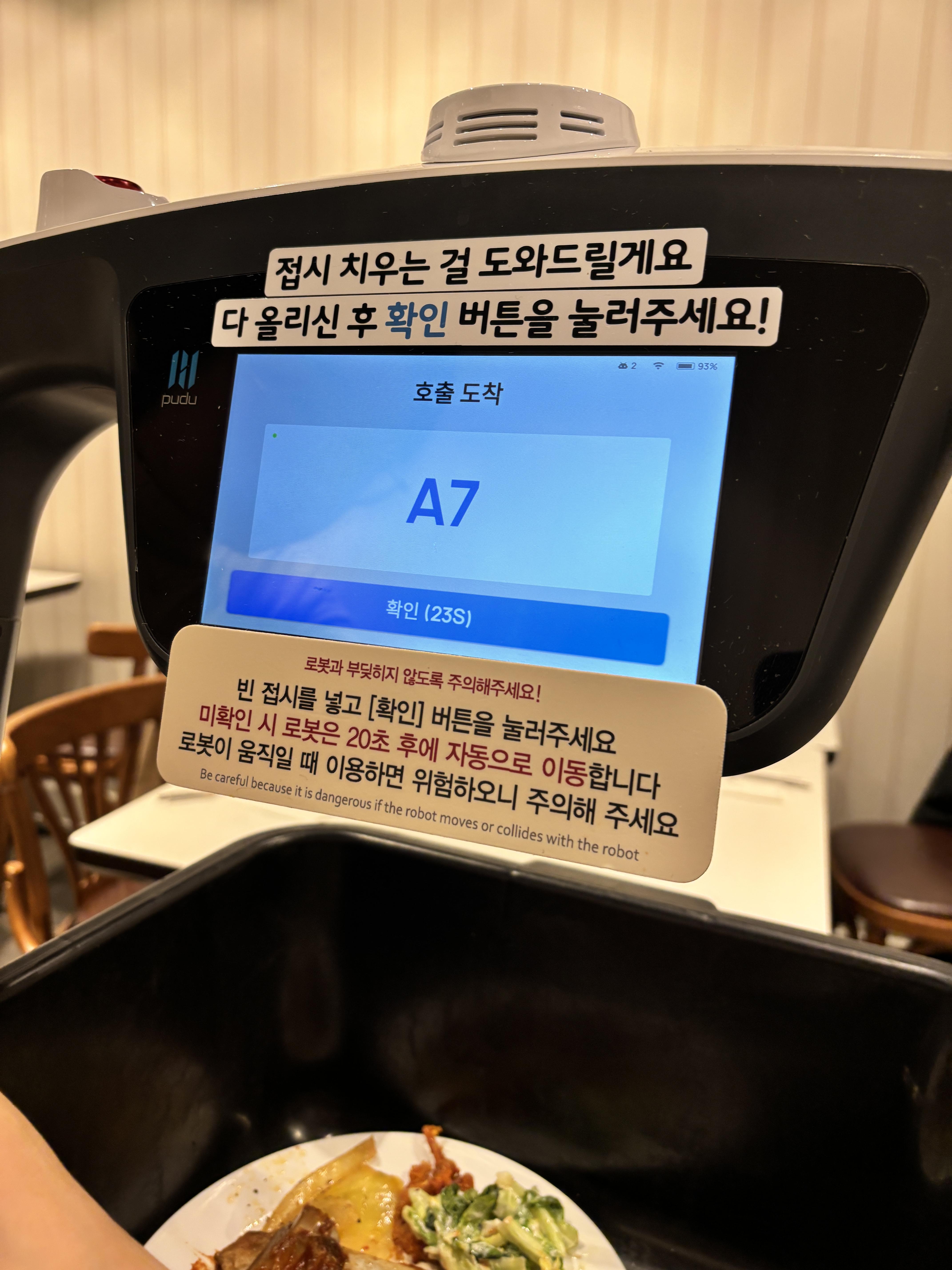 테이블에 벨이 직원을 부르는 용도가 아니라 로봇 친구를 부르는 용도였어요🤣