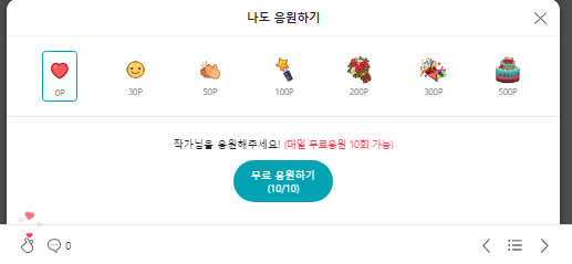 무료 응원은 하루 10회 제한이 걸려 있습니다!