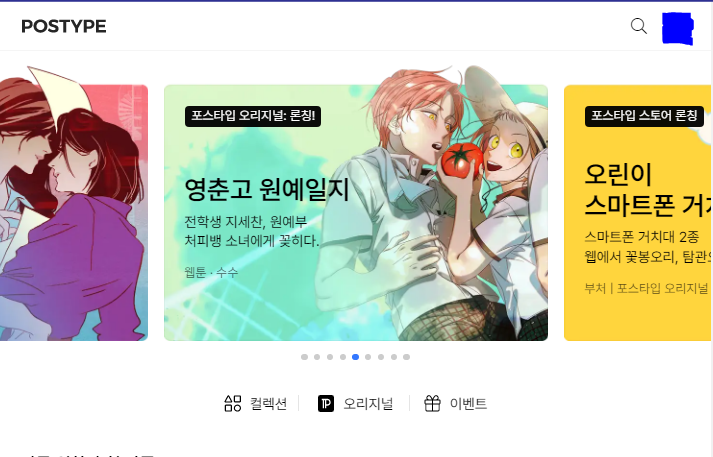<- 포스타입 메인 화면 알라딘 투비컨티뉴드 메인화면 ->