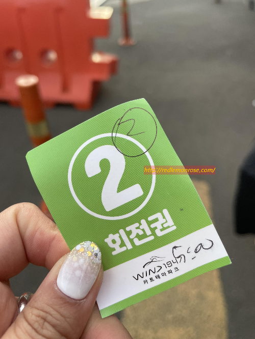 아트서커스 다음 목적지는 윈드 1947이라는 카트를 탈 수 있는 곳이랍니다. 저는 카트나 루지 같은 속도감 있는 것들을 매우 좋아하는 편인데 저희 어머님은 그런 속도감 있는 것들은 잘 못타시는 분이세요. 그다지 좋아하지 않으시기도 하고 허리를 수술하신 이후로는 덜컹이거나 속도감이 있는 기구들은 조심하셔야 하기 때문이에요. 그래서 저는 카트나 승마 둘 중 하나는 하고 싶었지만 혹시라도 엄마가 다치거나 하면 안될 일이기에 다음을 기약하려 했는데 엄마가 카트를 예약해보라고 해주셨어요. 엄마에게 티는 안냈지만 정말 너무 기쁘고 좋았답니다. 그렇게 오후 5시 40분 것을 예약하고 아트서커스 관람 후 바로 간지라 5시 조금 안돼서 도착했는데도 바로 안내를 도와주셨어요. 엄마가 카트를 운전해본 경험도 없고 그날 원피스를 입으셨기에 저희는 2인승을 타기로 했고 2회전권을 끊었습니다.
