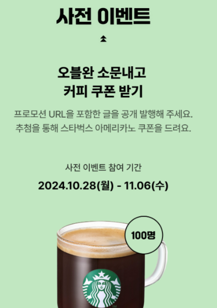 추첨을 통해 스타벅스 아메리카노 쿠폰을 준대요~