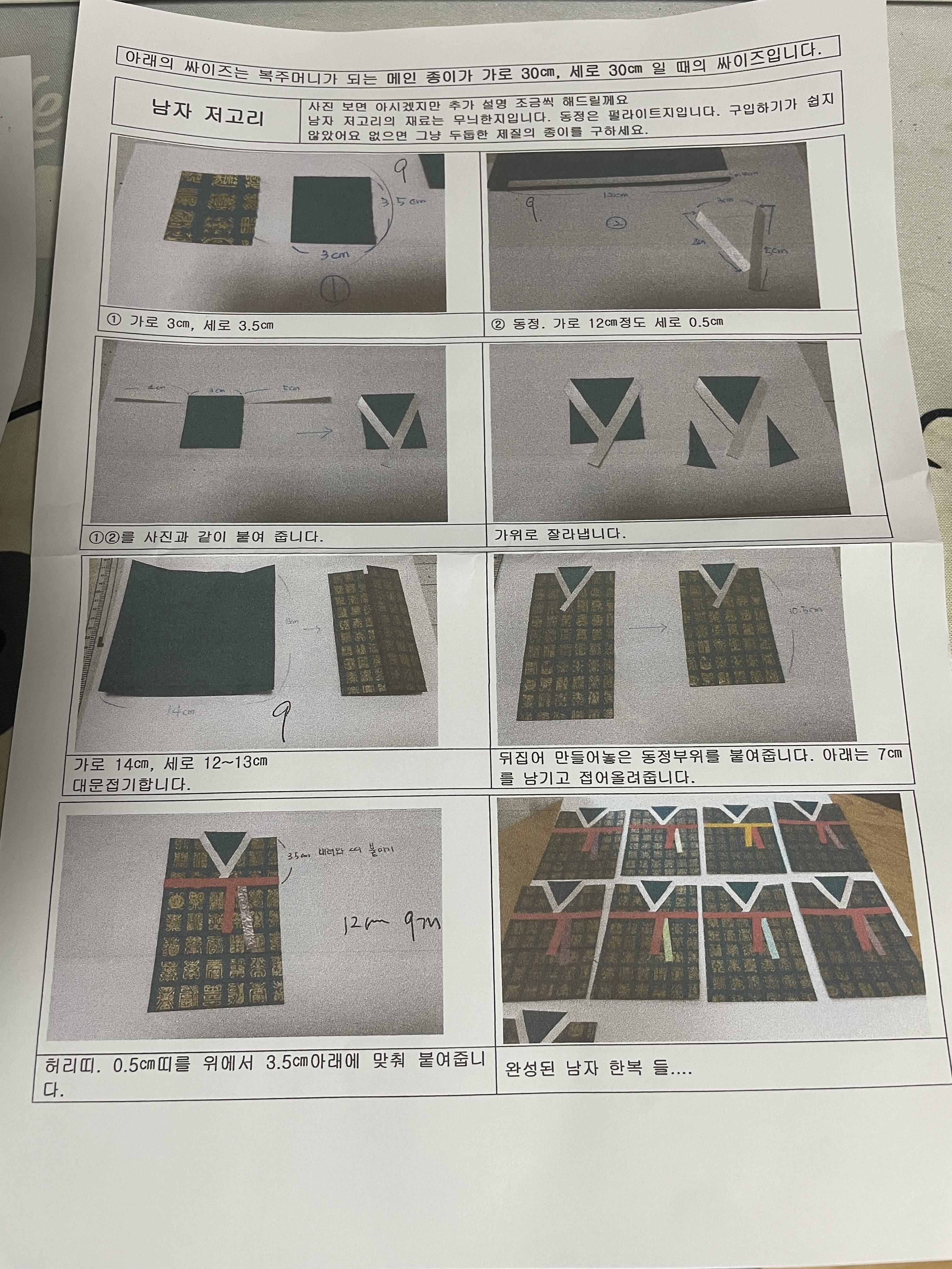 저고리들이랑 복주머니를 접는데 사용한 종이 사이즈들도 상세하게 나와있어요 ㅎㅎ