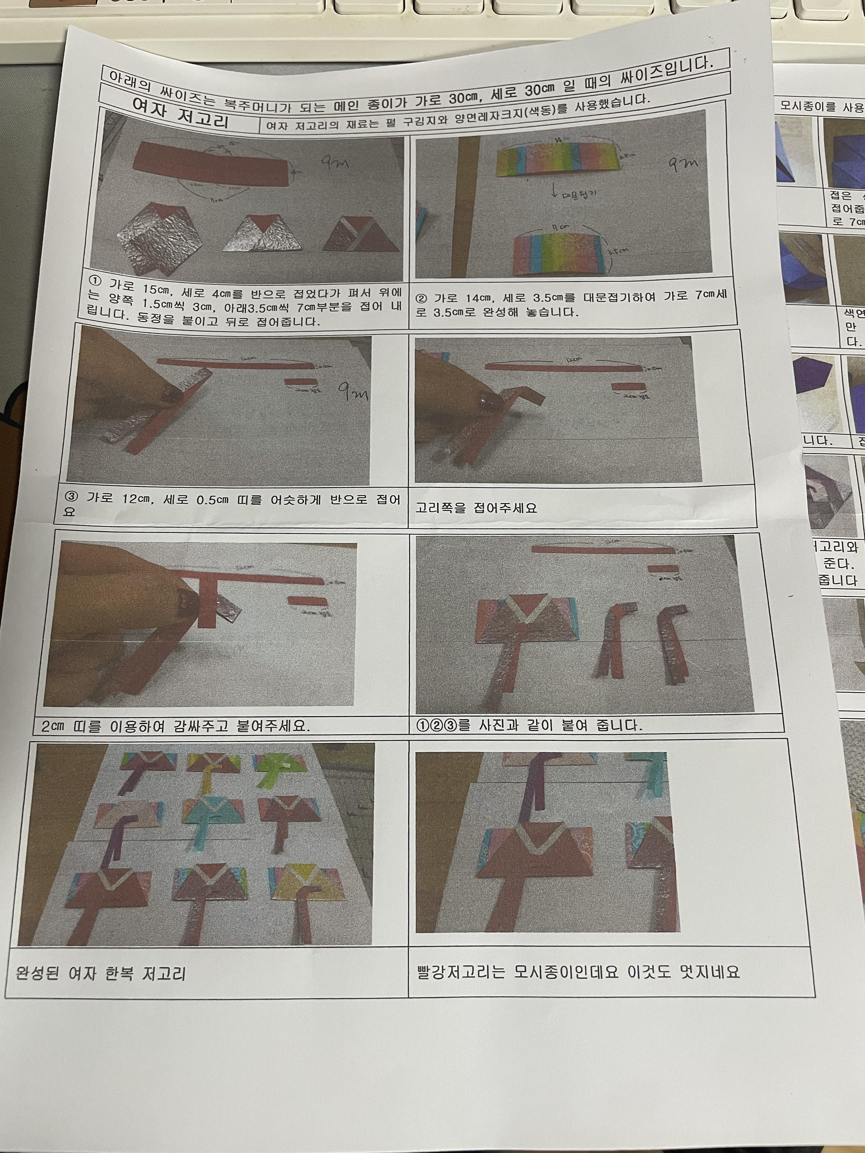 저고리를 만드는 종이들이 생각보다 작고 얇아서 꽤 손이 많이 가더라구요^^;;