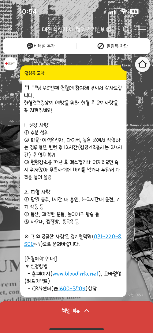 헌혈하고 나면 요로코롬 카톡이 옵니다~~