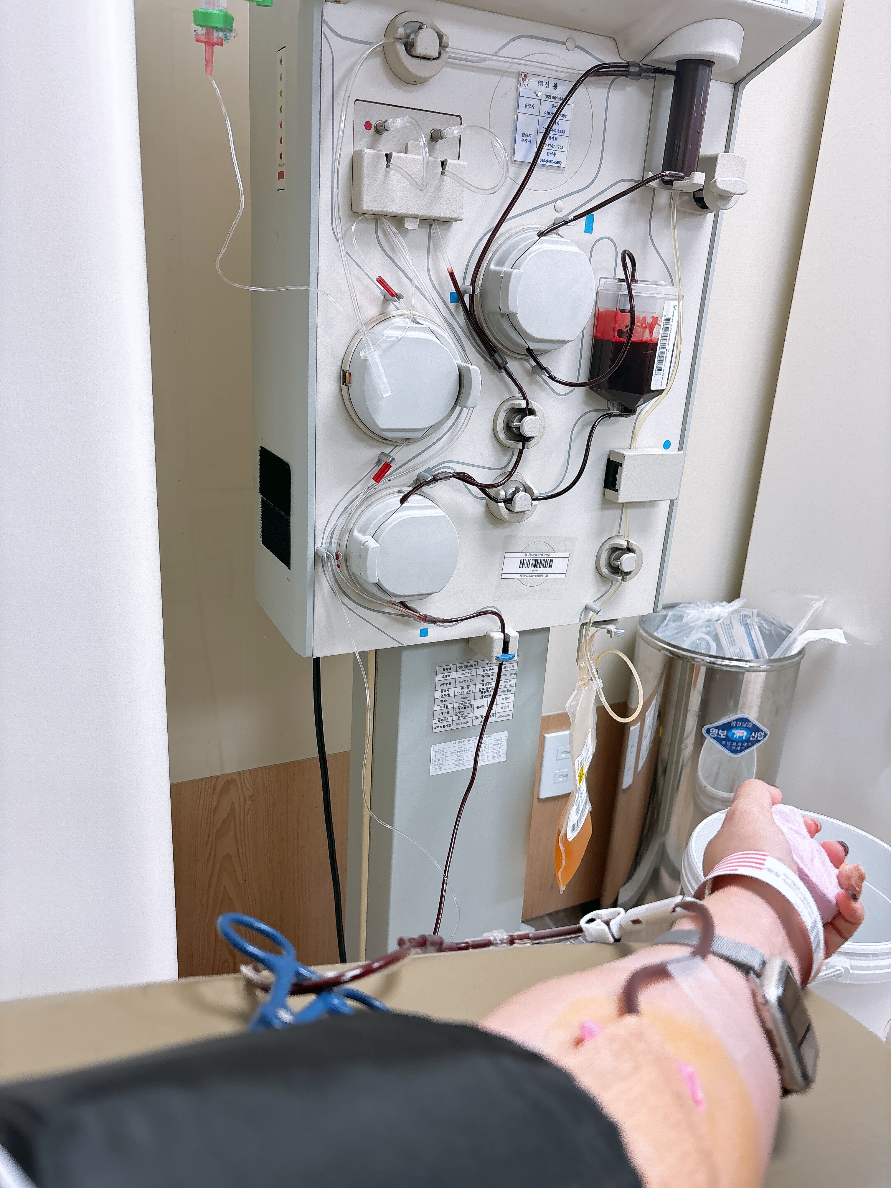 뭔가 이리저리 얽힌 기계 옆에서 헌혈을 했어요😆