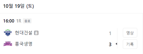 여자부는 현대건설과 흥국생명의 경기가 있었습니다