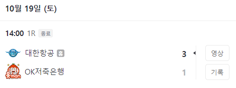 남자부는 대한항공과 OK저축은행의 경기가 있었고