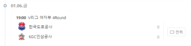 23.01.06 오늘의 여자 배구 일정, 한국도로공사 vs KGC 인삼공사