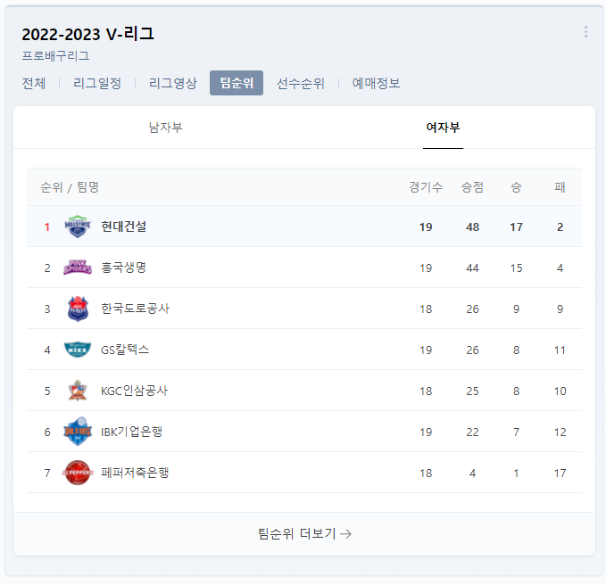 이번 경기 이후 순위변동이 생겼습니다