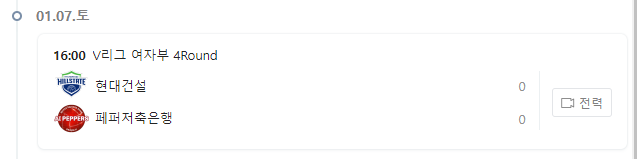23.01.11 오늘의 여자 배구 일정, 흥국생명 vs 현대건설 (0) | 2023.01.11 |