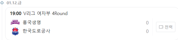 | 도드람 2023-2024 V리그 1월 일정 (0) | 2024.01.11 |