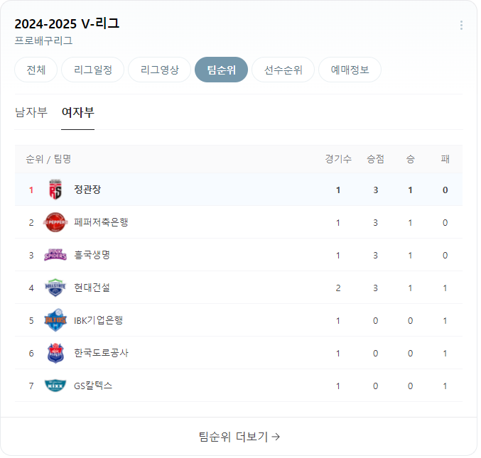 | 2024-2025 v리그 여자부 경기 일정 정리 (0) | 2024.10.22 |