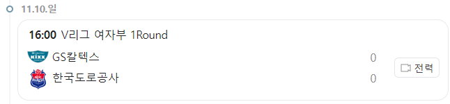 24.11.10 오늘의 여자배구 일정, GS칼텍스 vs 한국도로공사
