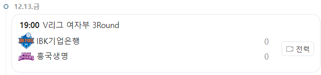24.12.13 오늘의 여자배구 일정, IBK기업은행 vs 흥국생명