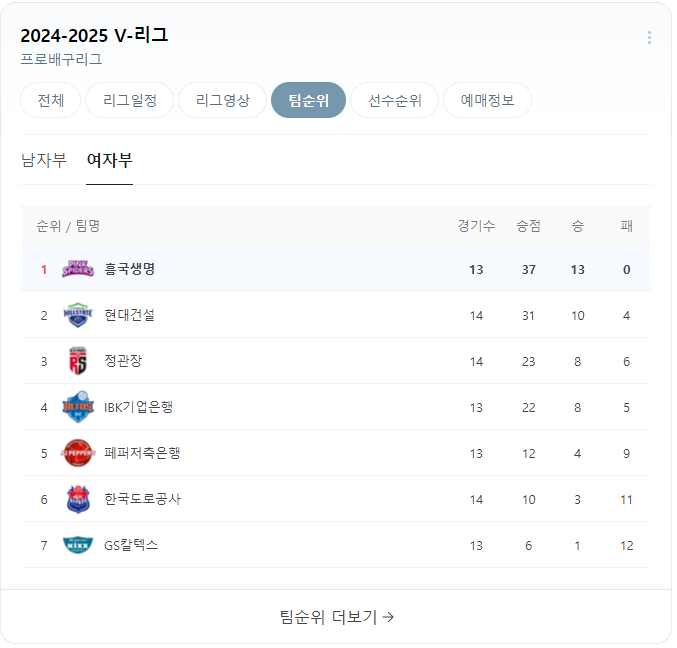 이번 경기 이후 순위입니다