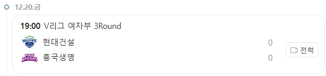 24.12.17 오늘의 여자배구 일정, 흥국생명 vs 정관장 (2) | 2024.12.17 |