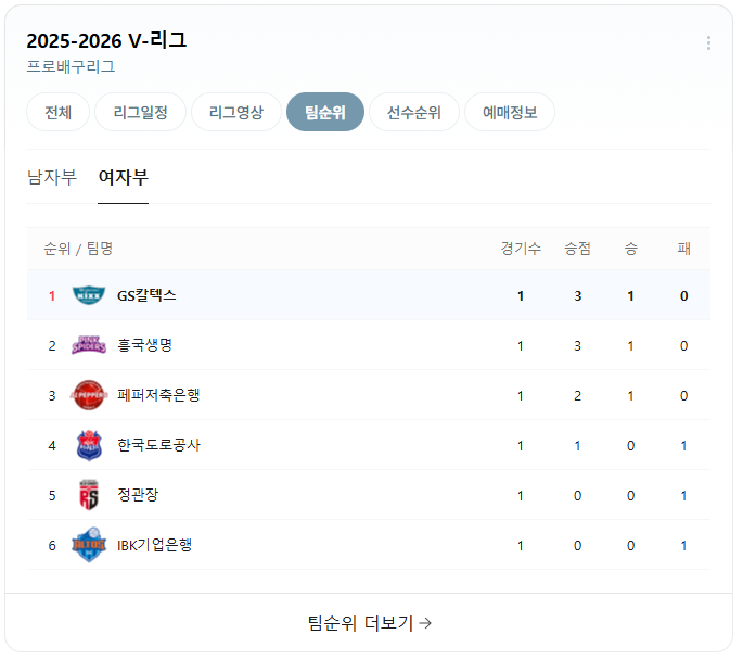 2025-2026 V리그 여자부 일정!