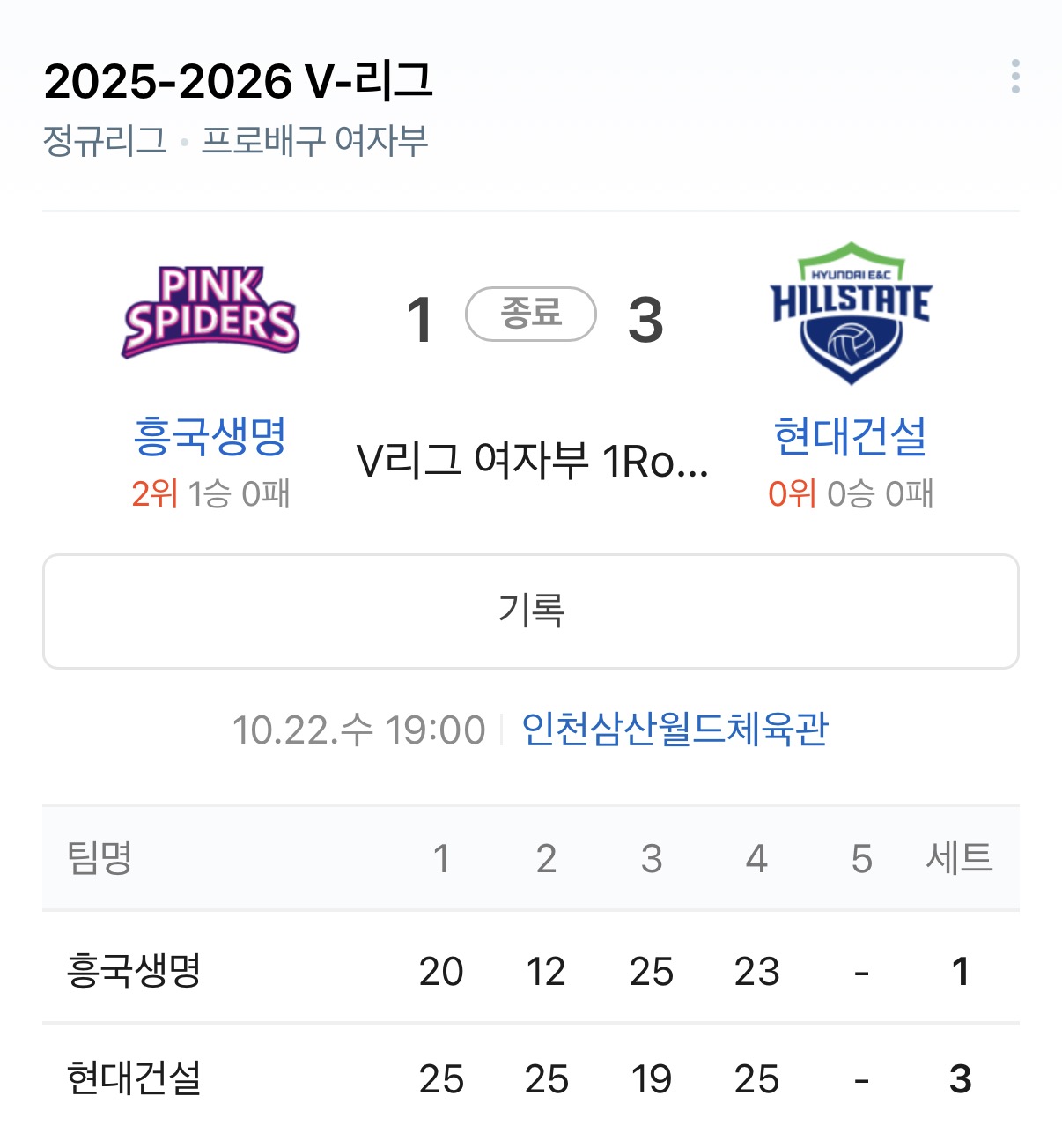 지난 22일에는 인천삼산월드체육관에서 흥국생명과 현대건설의 경기가 있었습니다