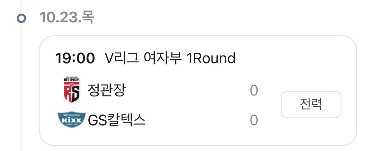 25.10.23 오늘의 여자배구 일정, 정관장 vs GS칼텍스